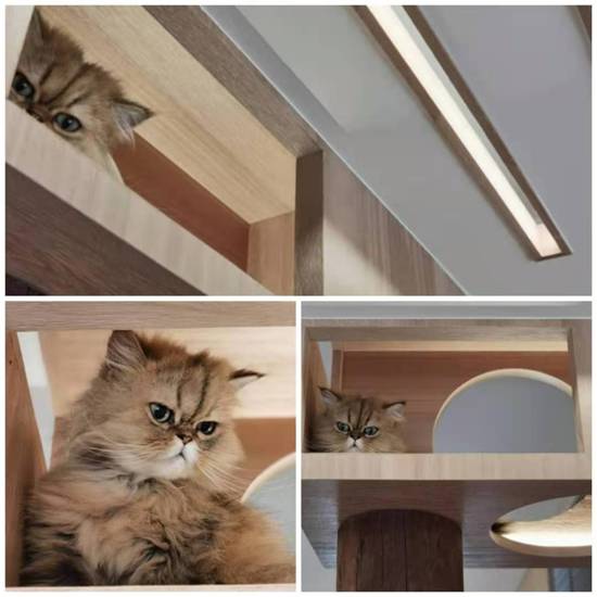 2.客厅上部大面积镂空,给予猫咪足够的休息活动空间,非常和谐。