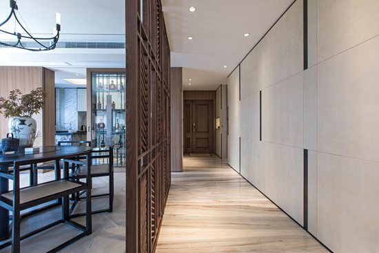 这是中式风格的古色古香与现代风格的简单素雅自然衔接,在这里,居住者对生活的实用性和对传统文化的追求同时得到了满足。