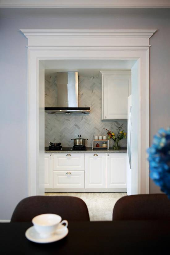 厨房整体采用纯白色调,里面都是周女士精心布置的巧思:小置物架能够很有序地排列调料罐,旁边鲜艳的花瓶能够让烹饪的心情更美丽~